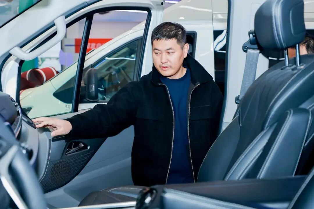 门店自用的李老板,更关注新能源轻客。他店里每天补三次货,之前用微卡燃油车,成本不低。“聚星纯电这款轻客,刚好戳中我的需求。”他简单算过账:“燃油微卡一天油钱80块,这个充电只要20块,每月能省不少。而且新能源不限行,早晚高峰也能送,比轻卡节能,短途高频补货完全够用。”