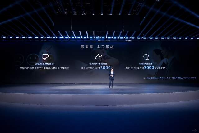 价格方面,启明星二级踏步车型提供标顶、高顶双版本,电池覆盖100-165度规格,搭载2C超充技术与三种碳化硅油冷高效电机,上市价16.88万元起;启明星一级踏步低入口车型入口高度仅470mm,配合1.88米标顶驾驶室,空间开阔通透;配备100-140度电池与2C超充技术,上市价17.09万元起。同时推出三重上市专属权益,权益一:前18000名首任车主,可享三电等核心零部件终身质保,养车、用车更省心;权益二:线上预交1000元,购车直接抵扣3000元,轻松省下购车成本;权益三:前18000名购车车主,直接赠送3000元保险补贴,用车更安心。以上权益在2026年6月30日前有效,先到先得,可叠加享受。