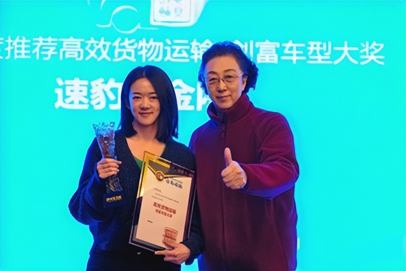 中国汽车工业咨询委员会副秘书长支敏(右)为获奖企业速豹科技代表颁奖